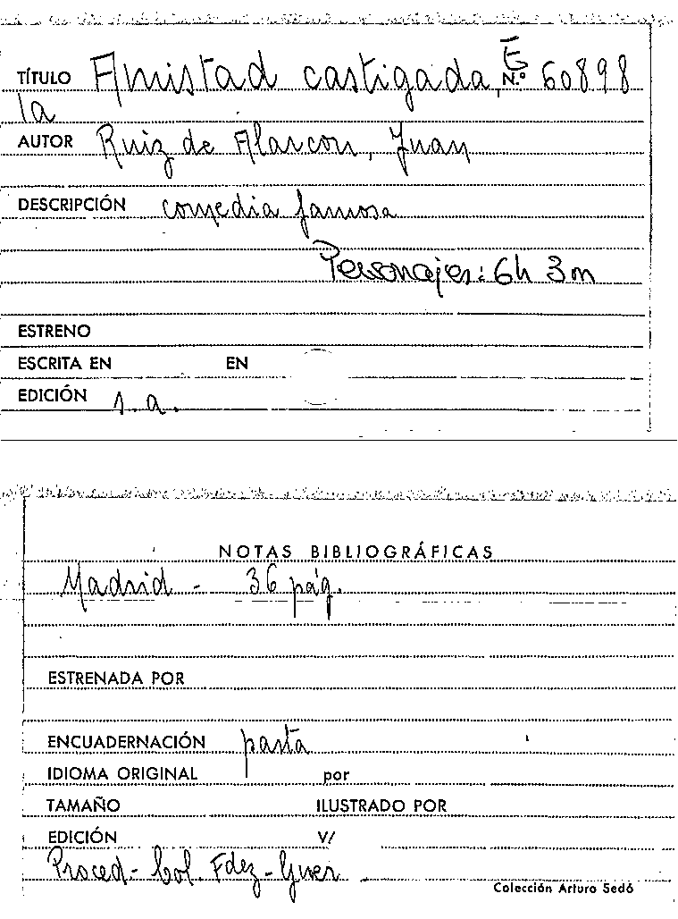 La Amistad castigada / Juan Ruiz de Alarcón by