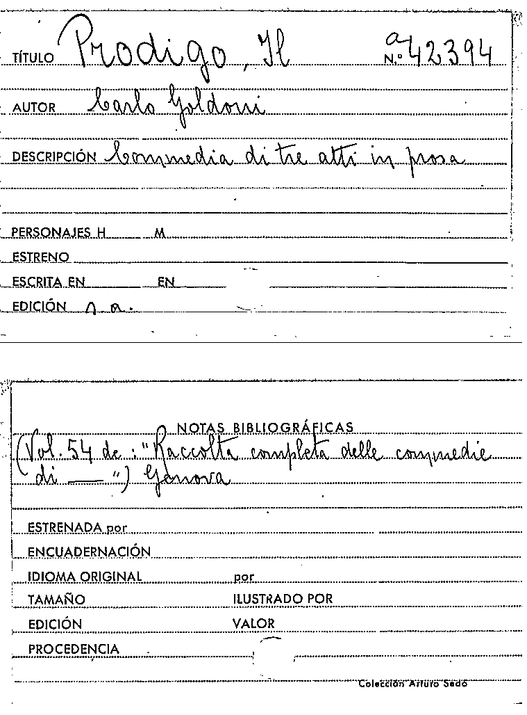 Il Prodigo / Carlo Goldoni by