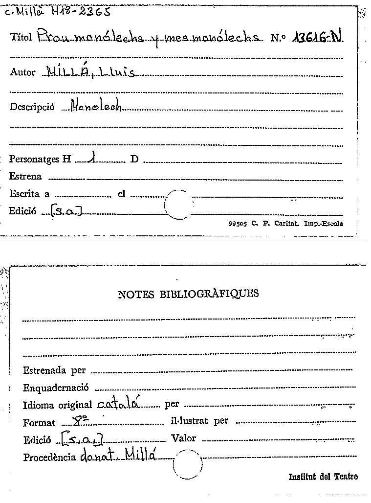 Prou monólechs y mes monólechs / Lluís Millà by