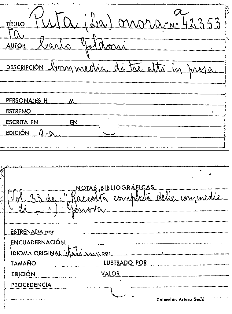 La Puta onorata / Carlo Goldoni by