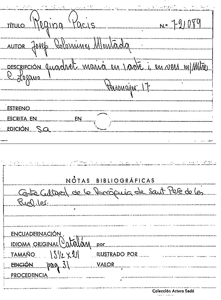 Regina Pacis / Josep Colomines Montada by