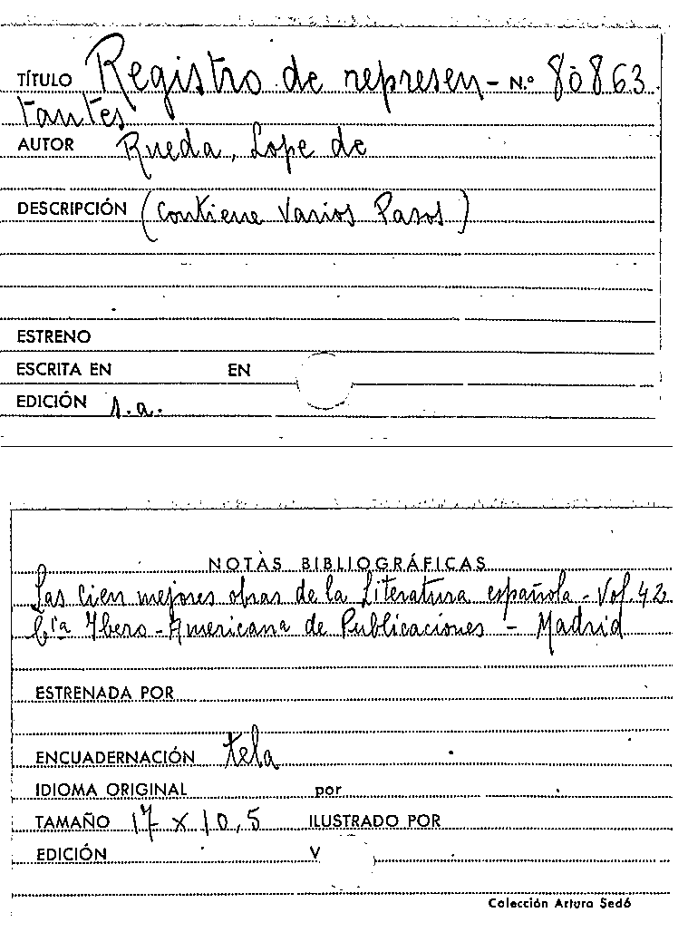 Registro de representantes / Lope de Rueda by