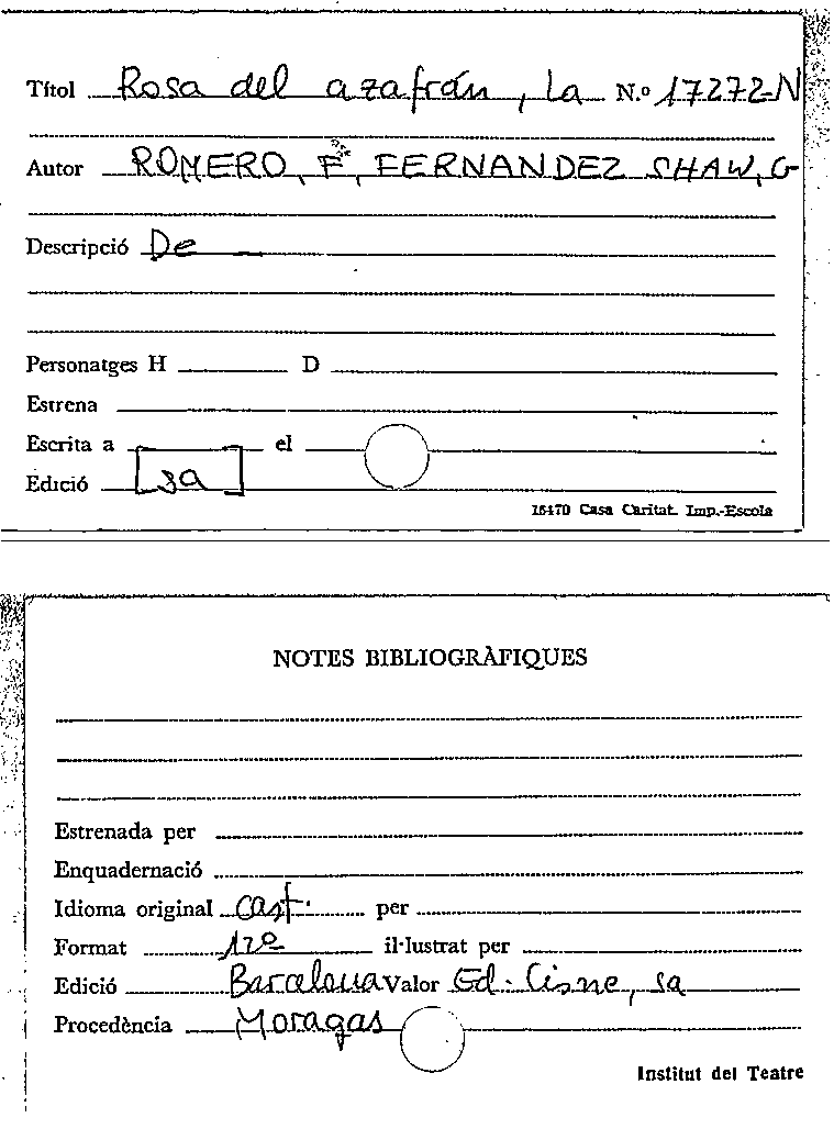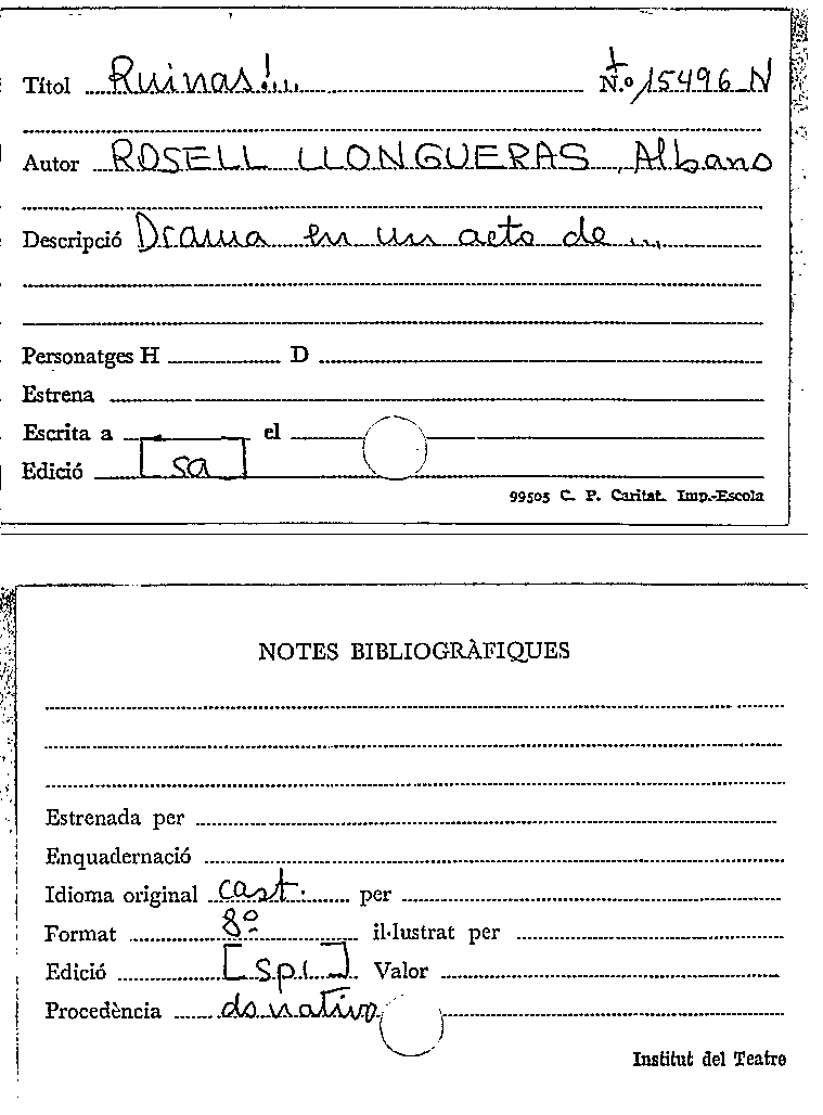 Availability: Items available for reference: Biblioteca Barcelona: Exclòs de préstec (1)Location, call number: BCN Magatzem Fons N 17933-N.