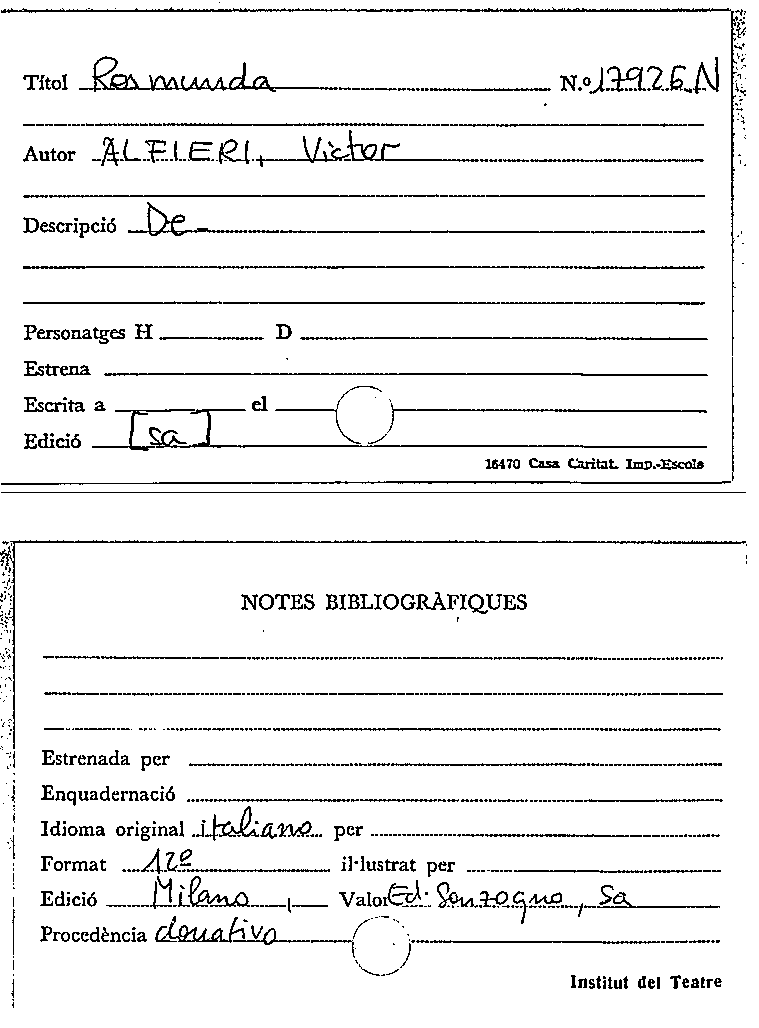 Availability: Items available for reference: Biblioteca Barcelona: Exclòs de préstec (1)Location, call number: BCN Magatzem Fons N 17926-N.