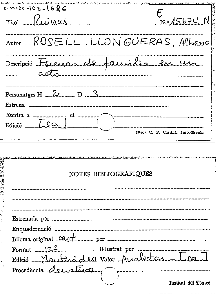 Availability: Items available for reference: Biblioteca Barcelona: Exclòs de préstec (2)Location, call number: BCN Magatzem Fons N 15496-N, ...