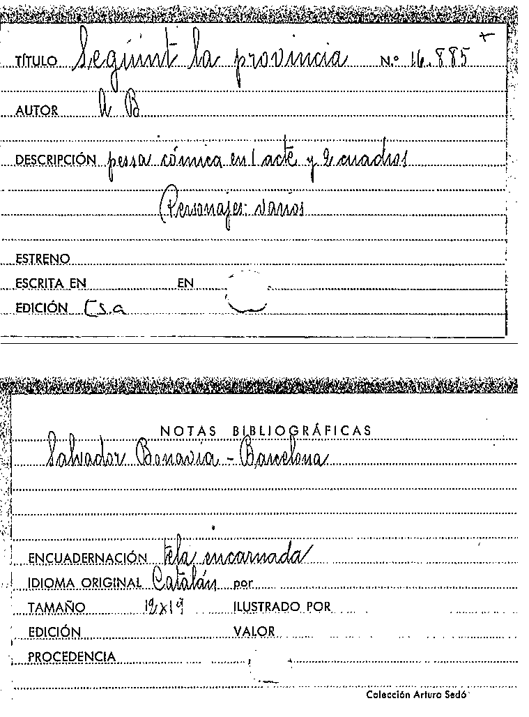 Publication details: Barcelona : Salvador Bonavia, [s.a.]