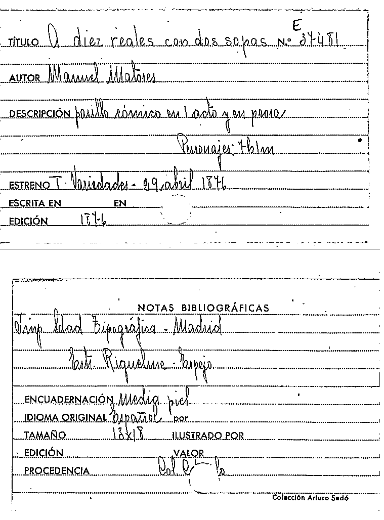 A diez reales con dos sopas / Manuel Matoses by