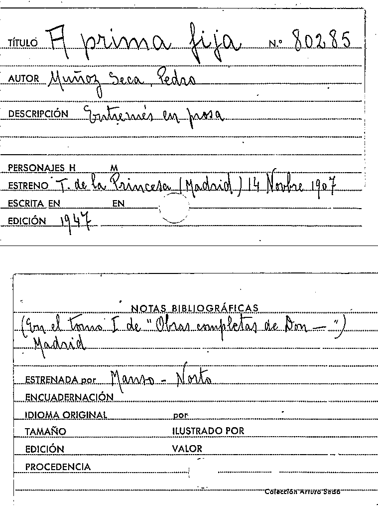 A prima fija / Pedro Muñoz Seca by