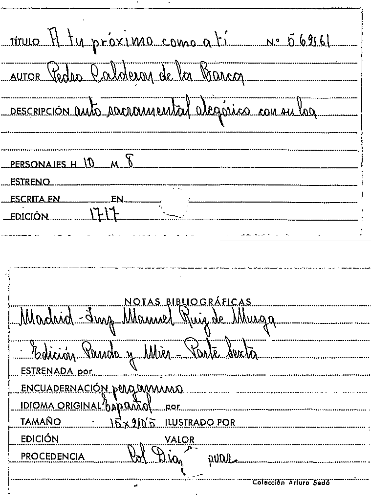 A tu próximo como a tí / Pedro Calderón de la Barca by