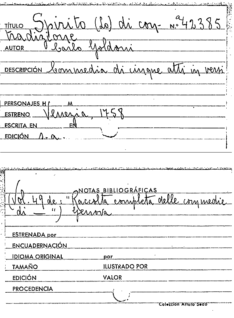 Lo Spirito di contradizione / Carlo Goldoni by