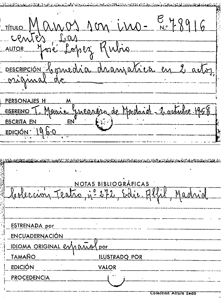 Las manos son inocentes : comedia dramática en dos actos by Series: Colección teatro (1951) ; 272