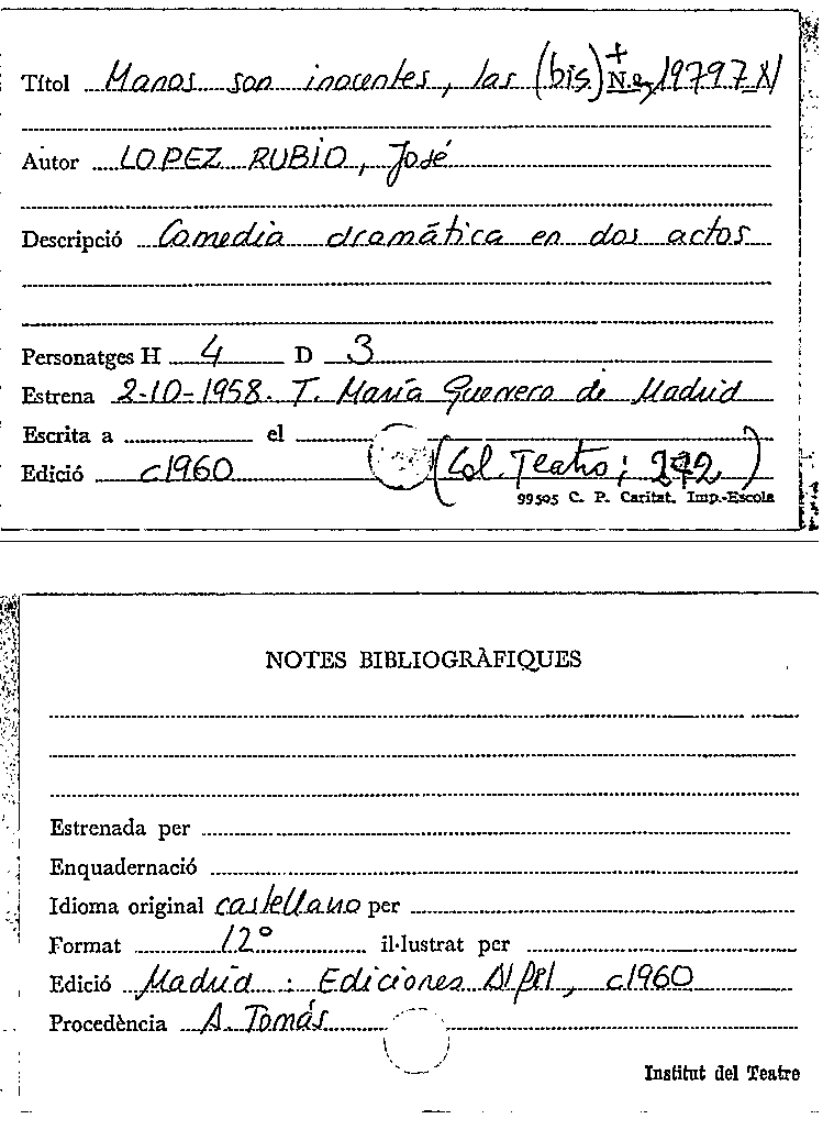Publication details: Madrid : El Público, Centro de Documentación Teatral, 1990
