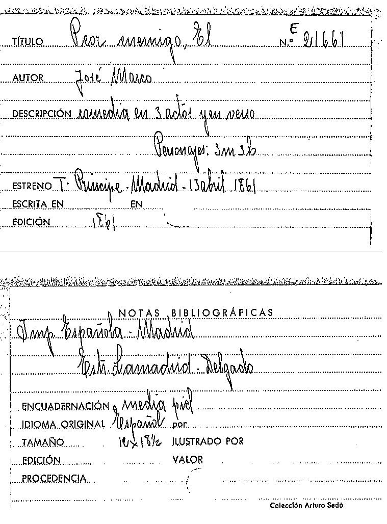 El peor enemigo : comedia en tres actos y en verso / original de José Marco by