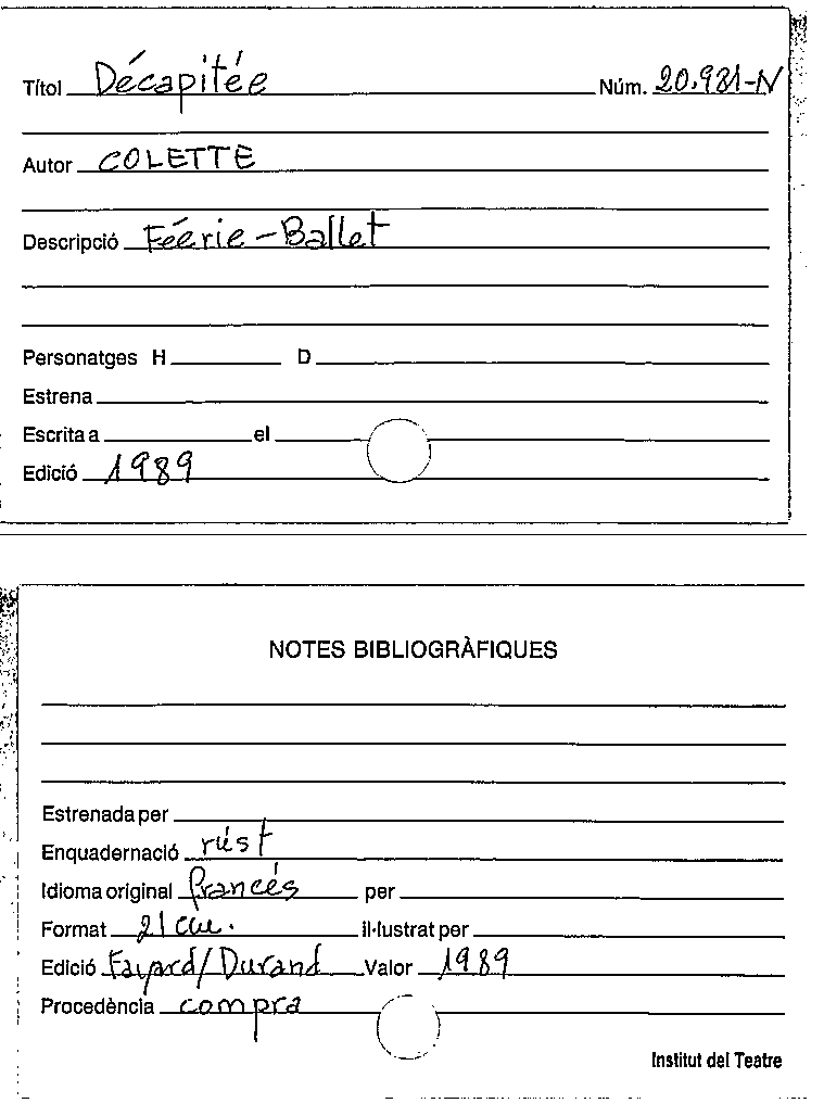 Availability: Items available for reference: Biblioteca Barcelona: Exclòs de préstec (1)Location, call number: BCN Magatzem Fons N 20981-N.
