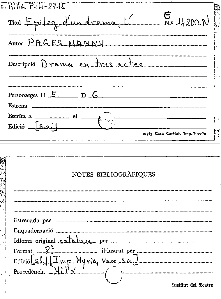 L'Epileg d'un drama / Joan Bta Pagès Maruny by
