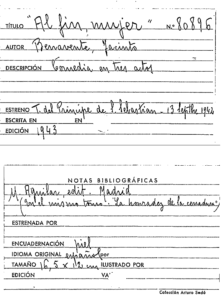 "Al fin, mujer" / Jacinto Benavente by