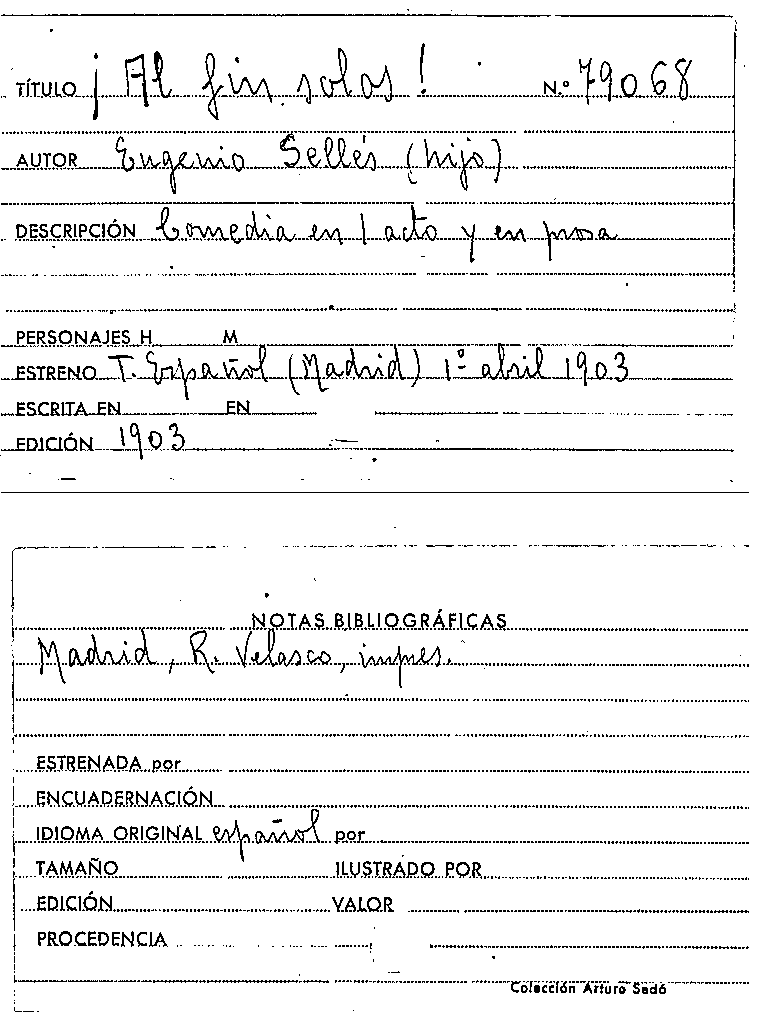 ¡Al fin solos! / Eugenio Sellés y Rivas by