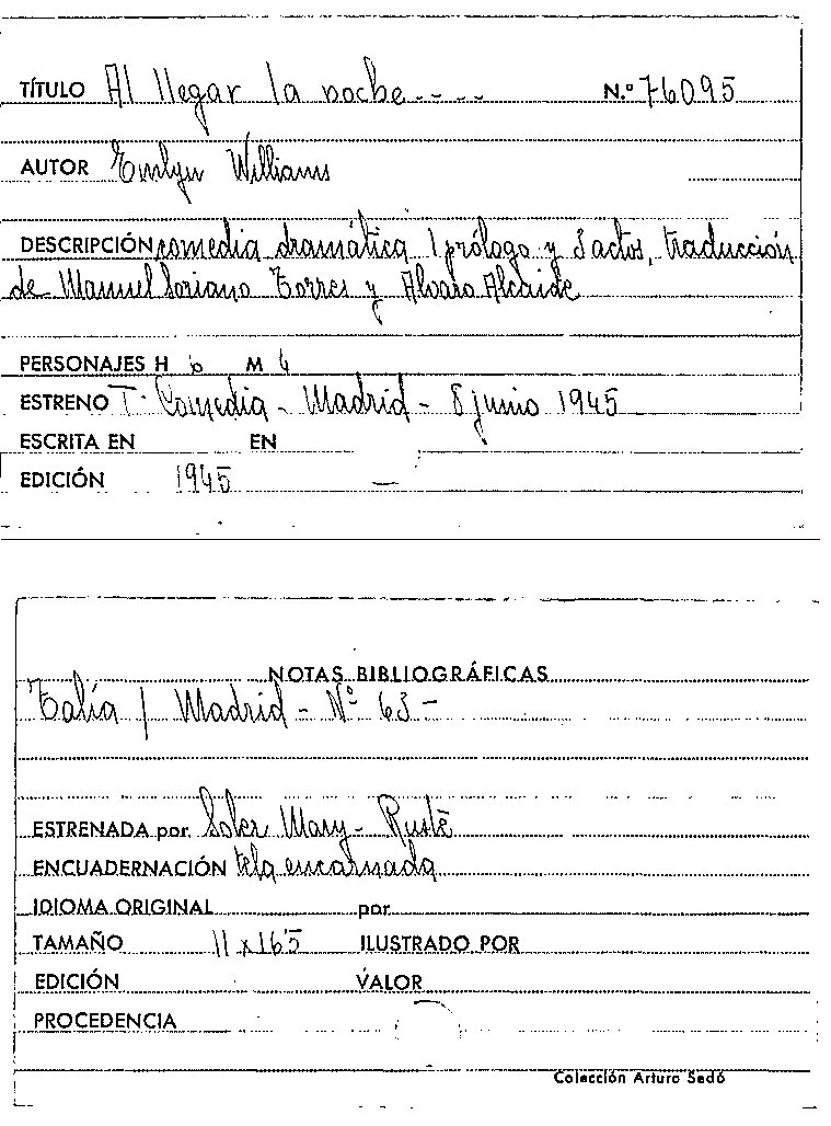 Al llegar la noche ... / Emlyn Williams by