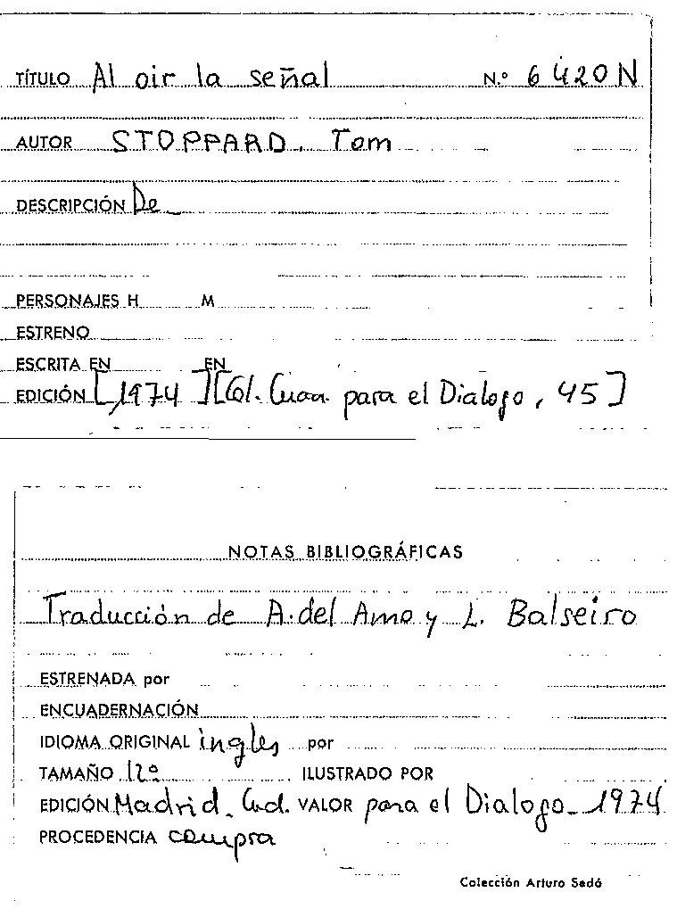 Al oir la señal / Tom Stoppard by Publicacions periòdiques: Cuadernos para el diálogo ; 45