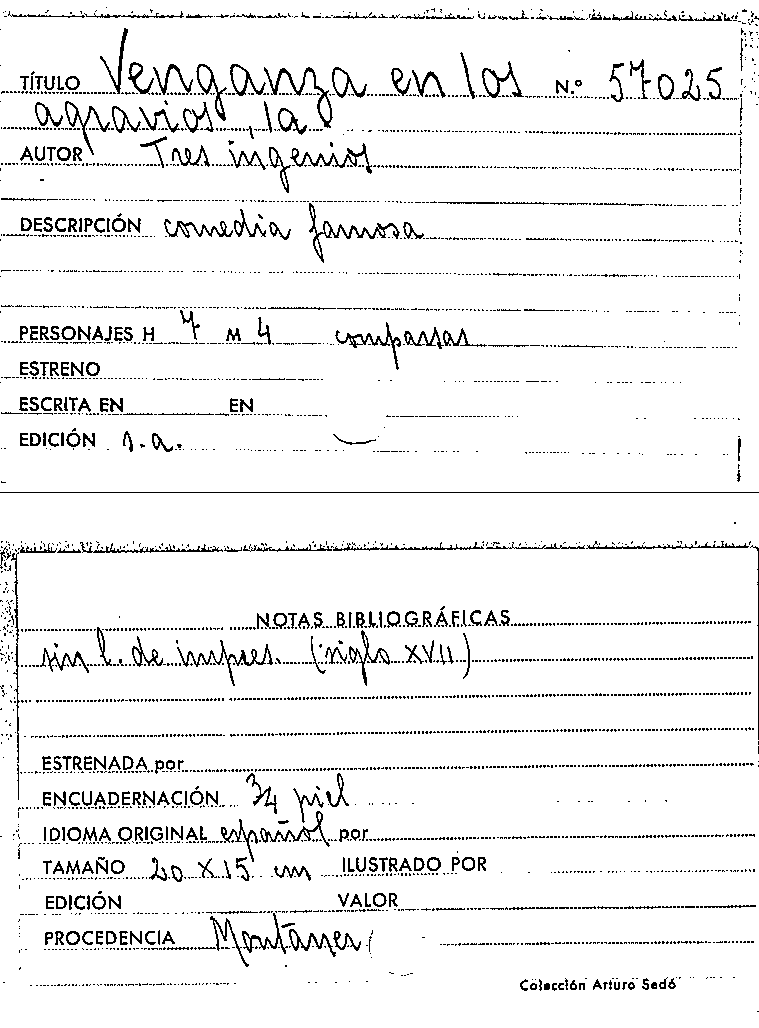 La Venganza en los agravios / Tres Ingenios by