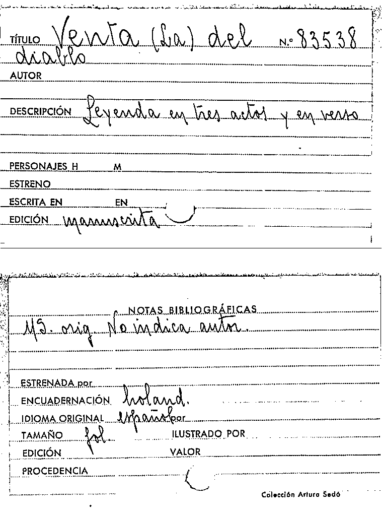 La Venta del diablo [Manuscrit]