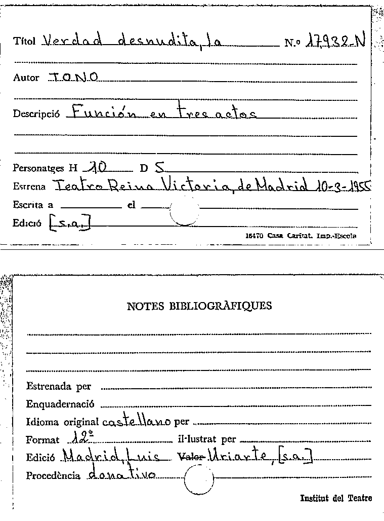 Availability: Items available for reference: Biblioteca Barcelona: Exclòs de préstec (1)Location, call number: BCN Magatzem Fons N 17932-N.