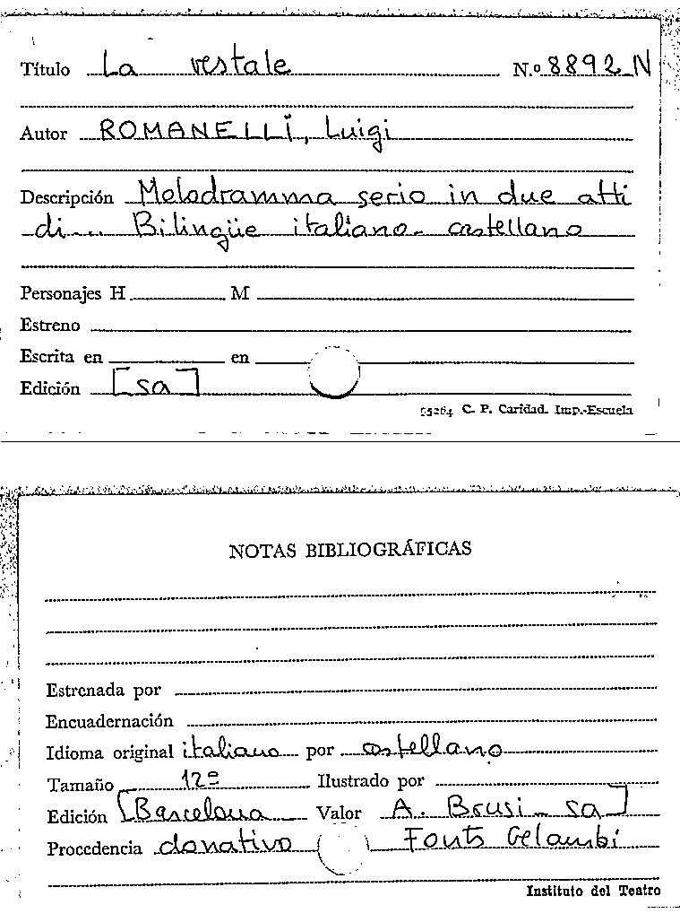 La Vestale / Luigi Romanelli by