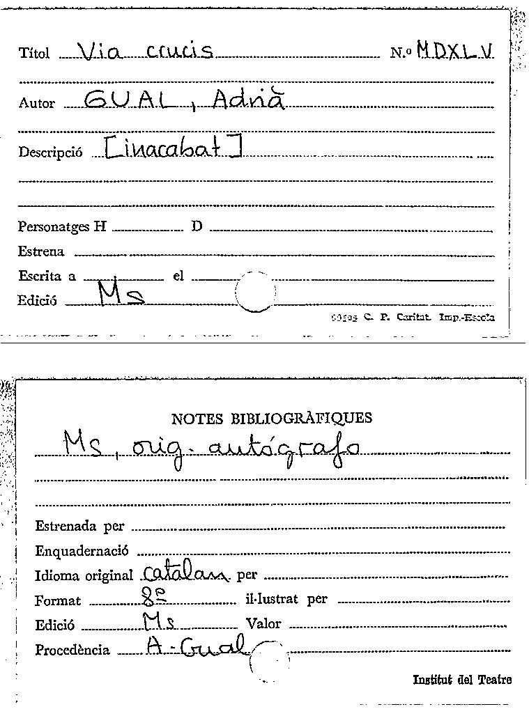 Availability: Items available for reference: Biblioteca Barcelona: Exclòs de préstec (2)Location, call number: BCN Magatzem Manuscrits Ms. 1267, ...