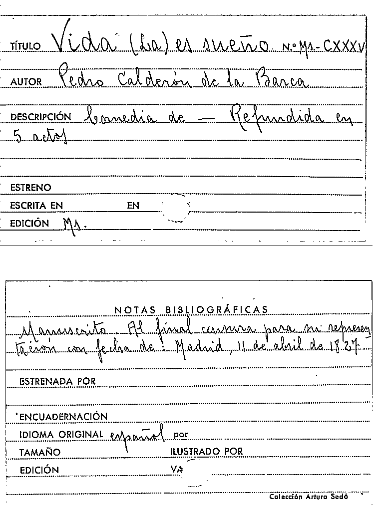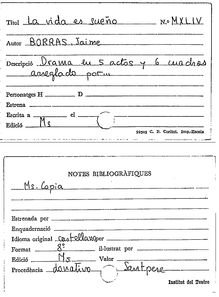 La Vida es sueño [Manuscrit] / Jaime Borrás by