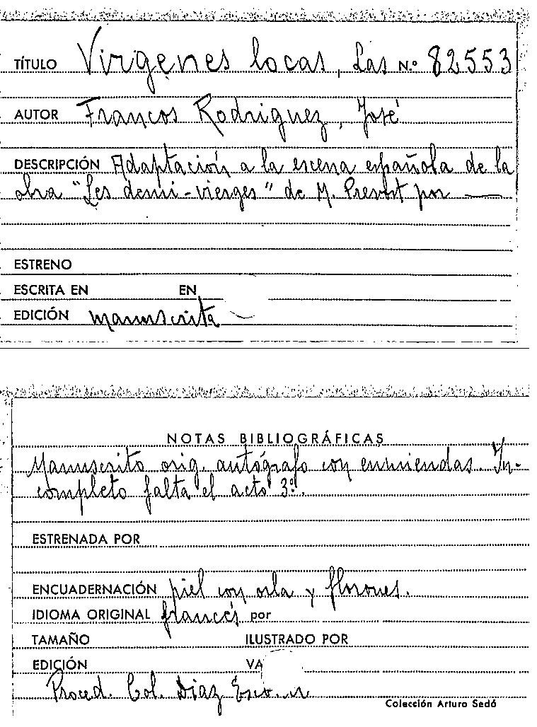 Las Virgenes locas [Manuscrit] / José Francos Rodríguez by