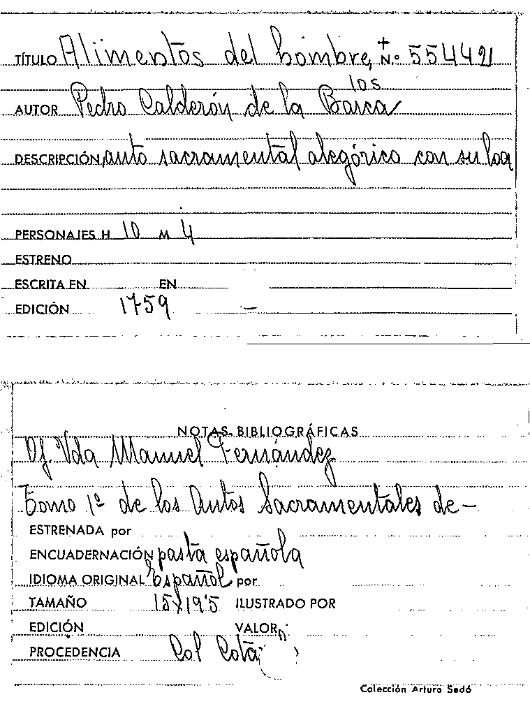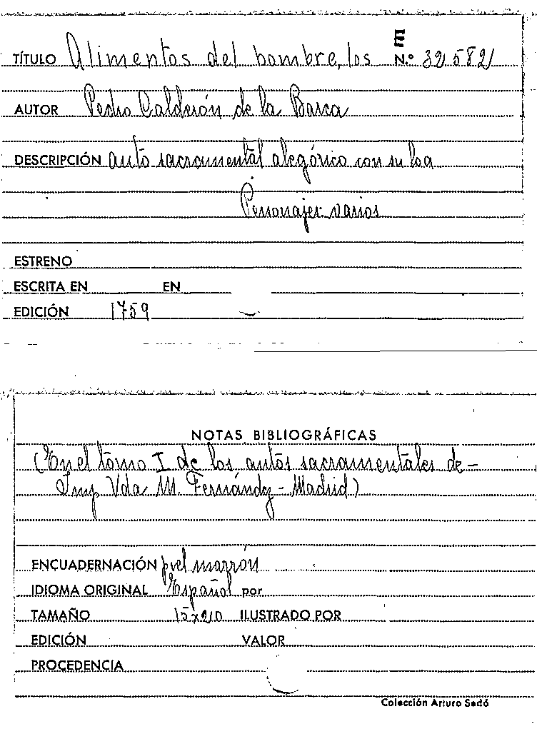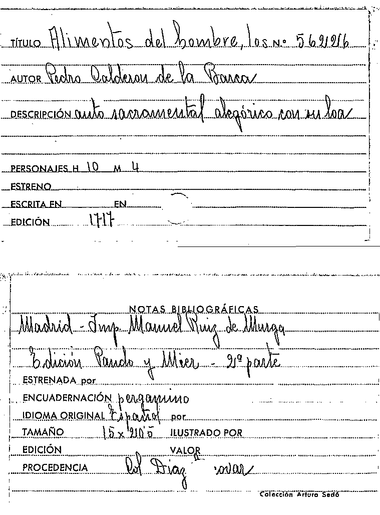 Los Alimentos del hombre / Pedro Calderón de la Barca by
