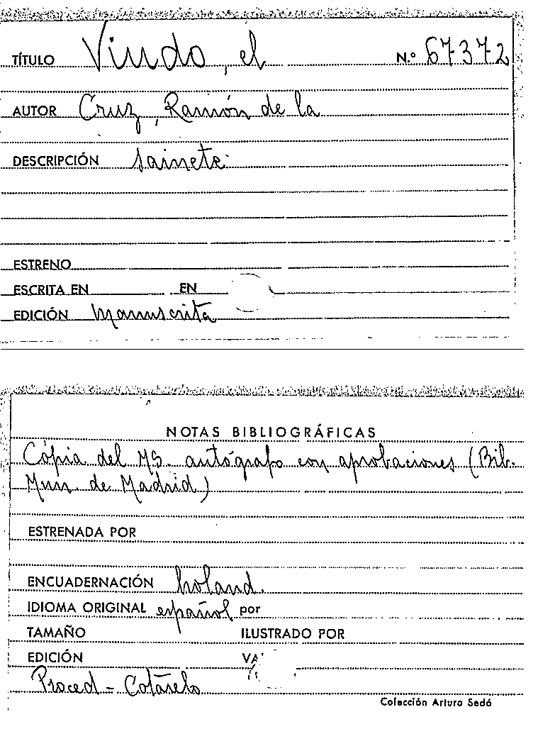 El Viudo [Manuscrit] / Ramón de la Cruz by