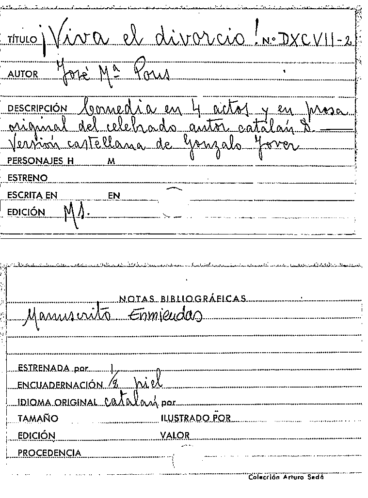 ¡Viva el divorcio! [Manuscrit] / Josep Maria Pous by