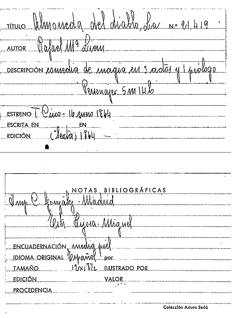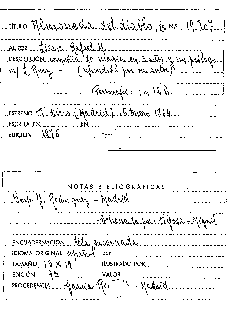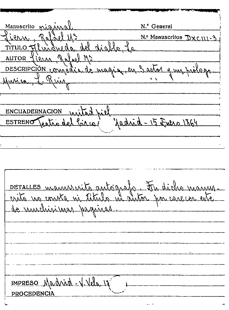 La Almoneda del diablo [Manuscrit] / Rafael María Liern por
