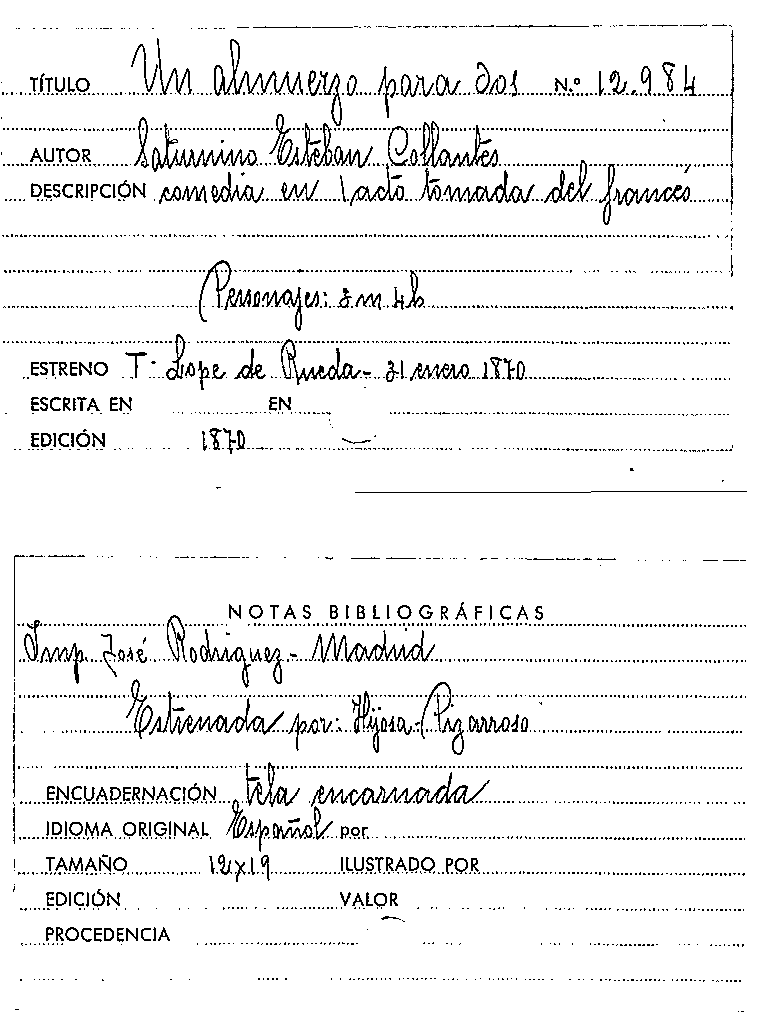 Un Almuerzo para dos / Saturnino Esteban Collantes por
