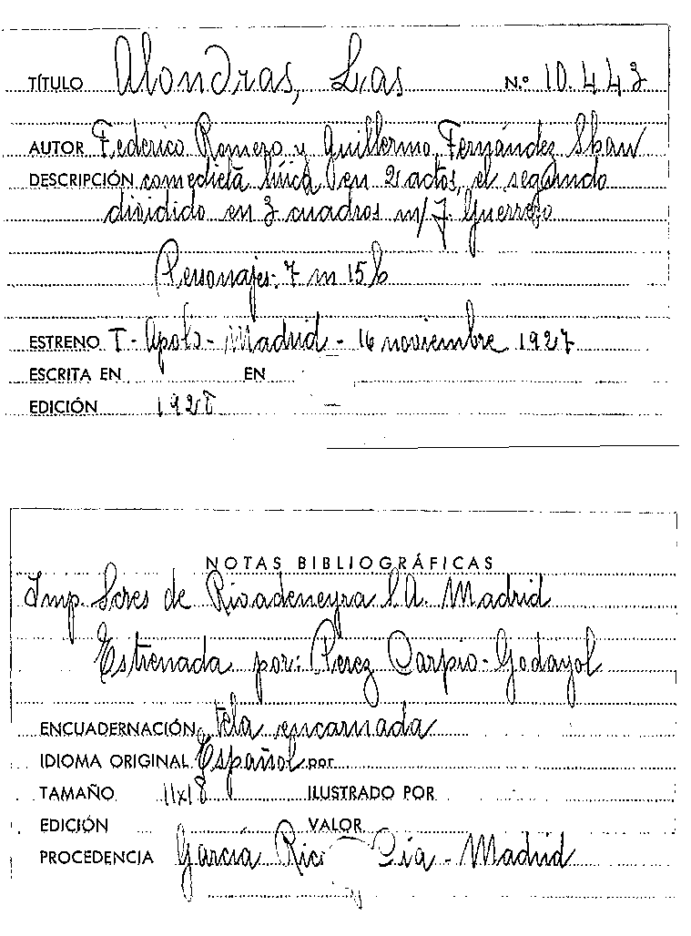Las Alondras / Federico Romero , Guillermo Fernández Shaw por