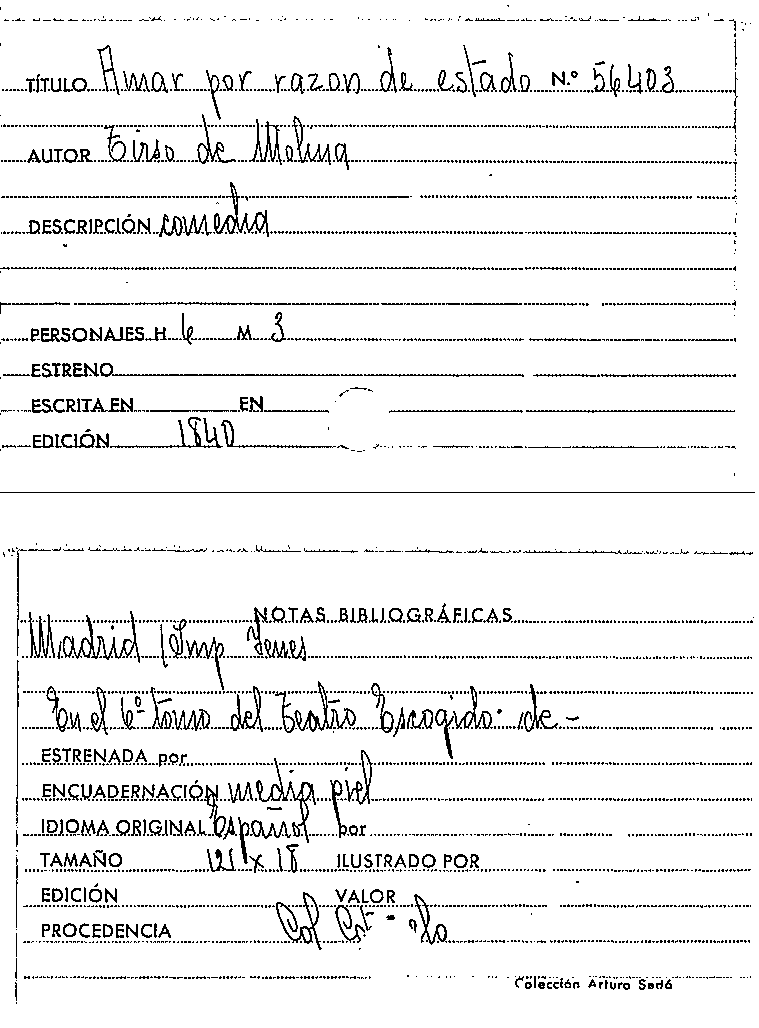 Amar por razón de estado / Tirso de Molina by