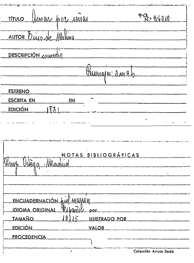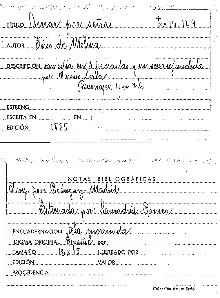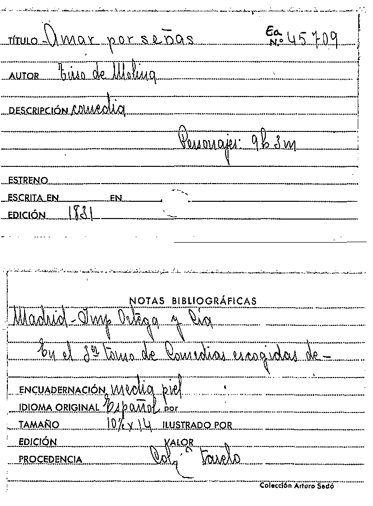 Amar por señas / Tirso de Molina by