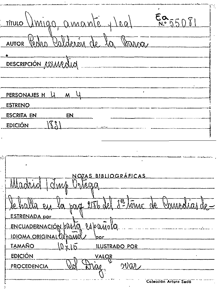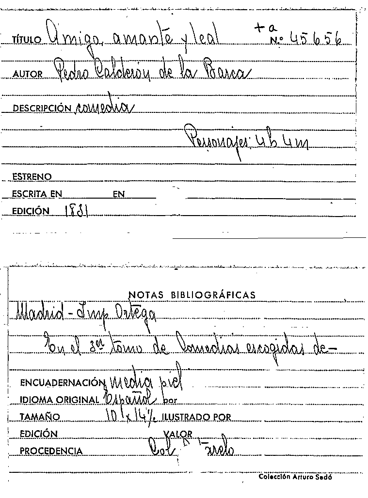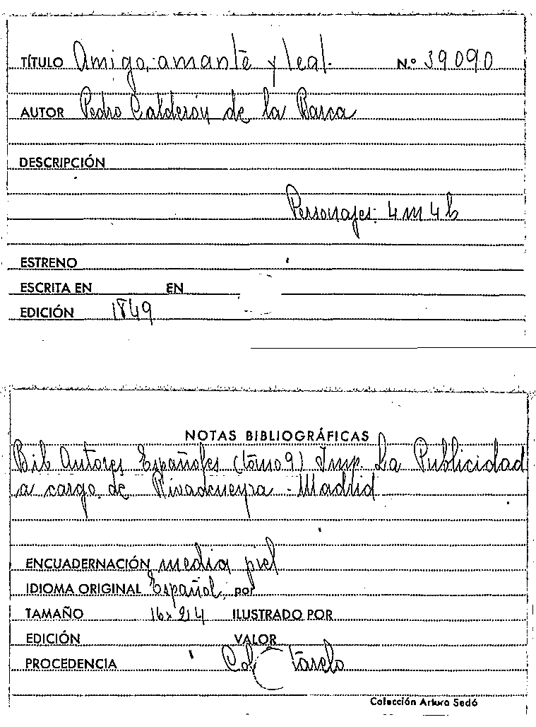 Amigo, amante y leal / Pedro Calderón de la Barca by