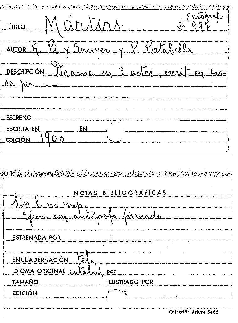 Availability: Items available for reference: Biblioteca Barcelona: Exclòs de préstec (2)Location, call number: BCN Magatzem Sedó Autògrafs 997-A, ...
