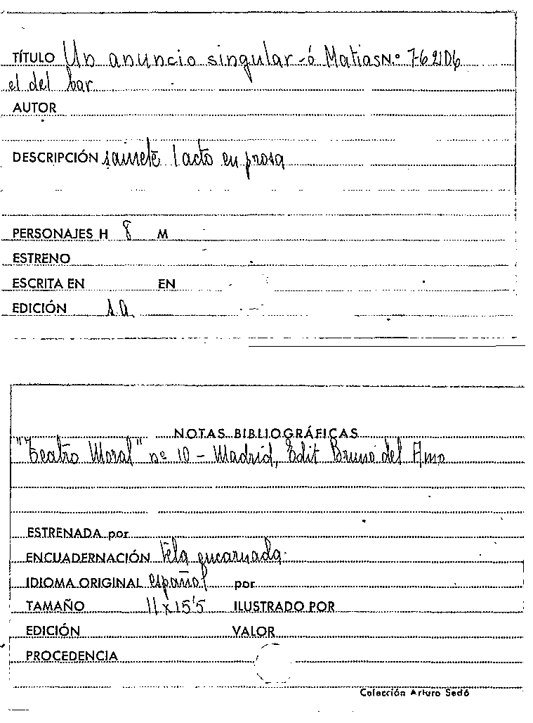 Un Anuncio singular, ó, Matias el del bar