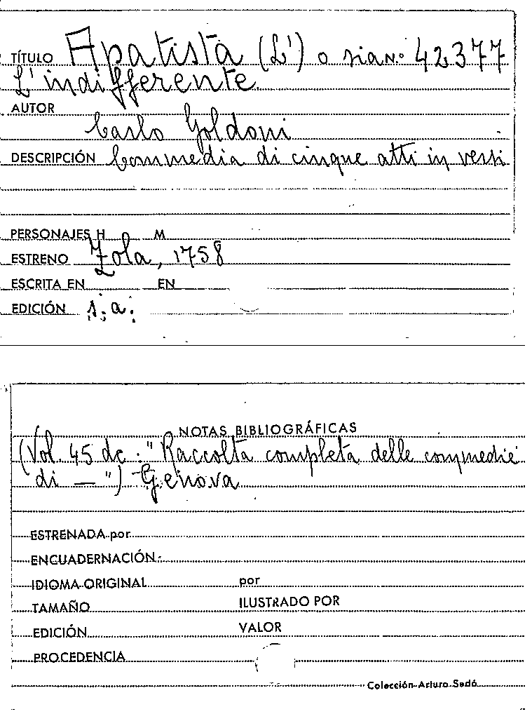 L'Apatista, o sia, L'Indifferente / Carlo Goldoni by