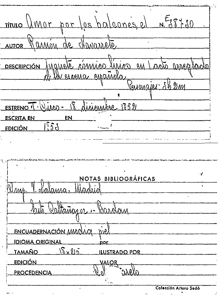 El Amor por los balcones / Ramón de Navarrete by