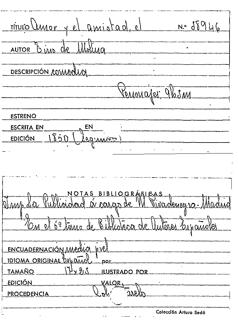 El Amor y el amistad / Tirso de Molina by