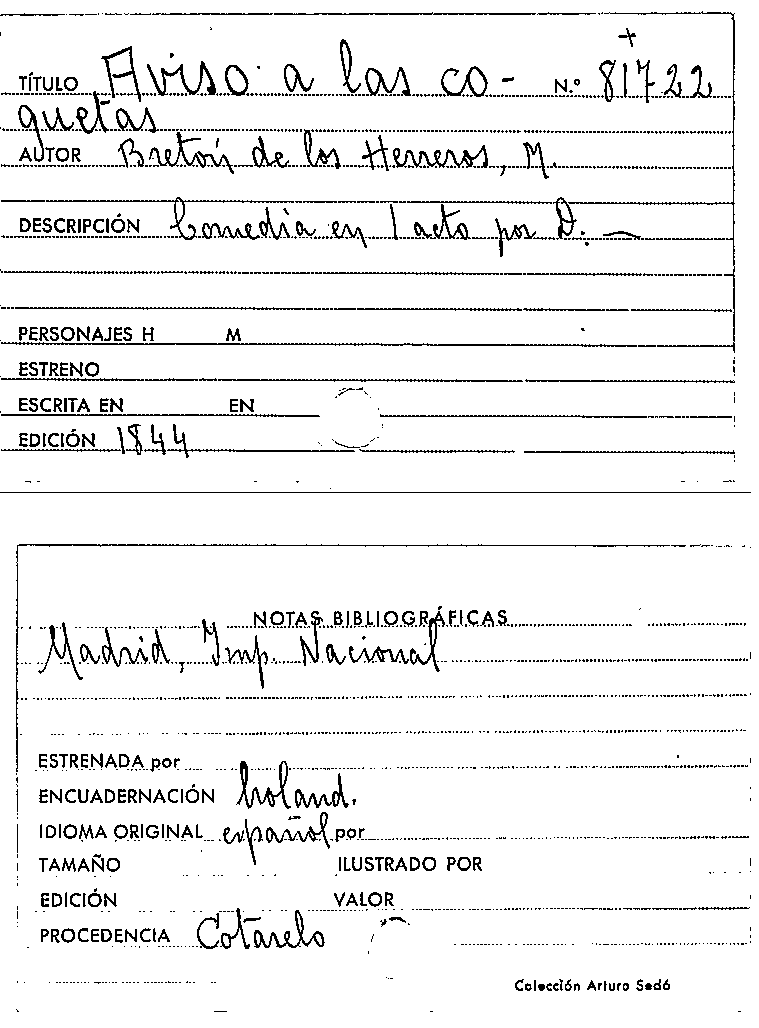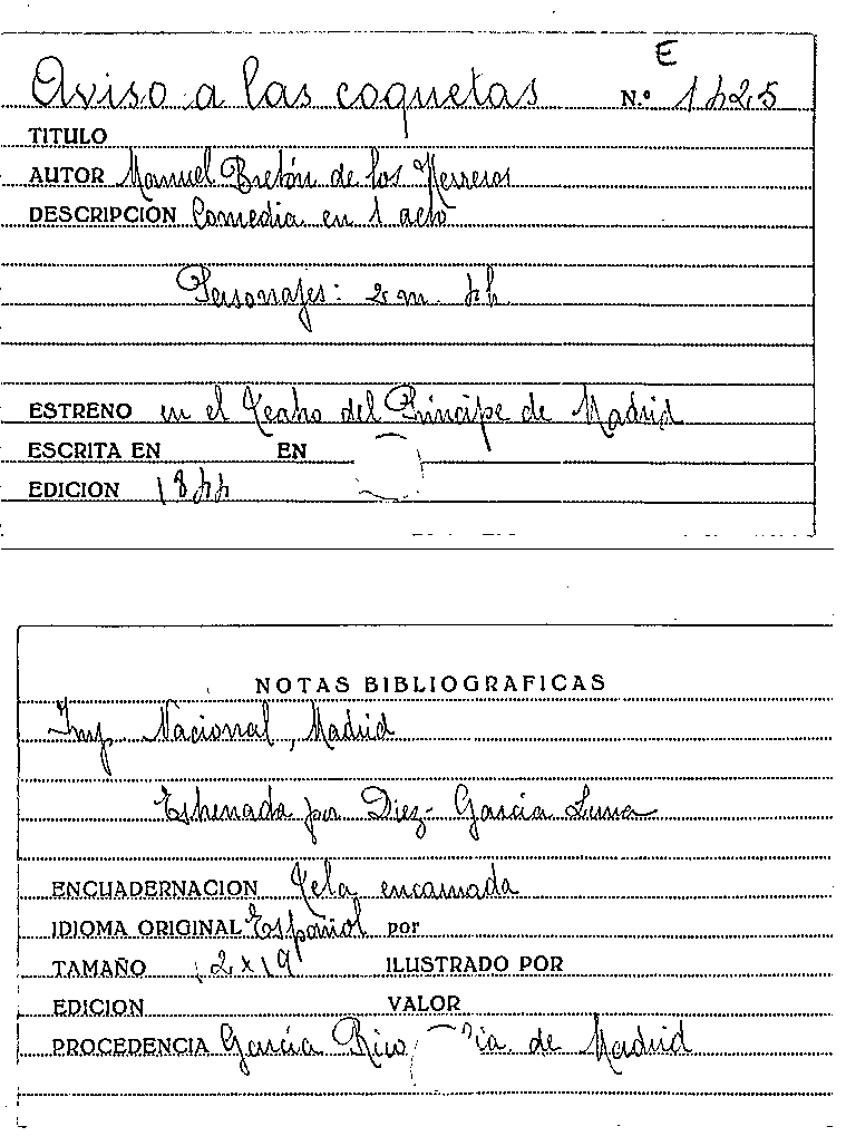 Aviso a las coquetas / Manuel Bretón de los Herreros by
