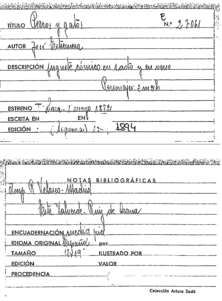 Perros y gatos : juguete cómico en un acto y en verso / original de José Estremera by