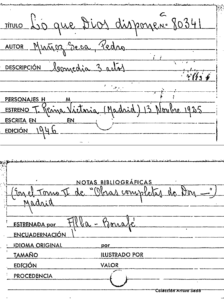 Lo que Dios dispone : comedia en tres actos / original de Pedro Muñoz Seca ... by