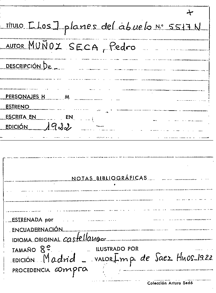Los planes del abuelo : comedia en tres actos / original de Pedro Muñoz Seca .. by