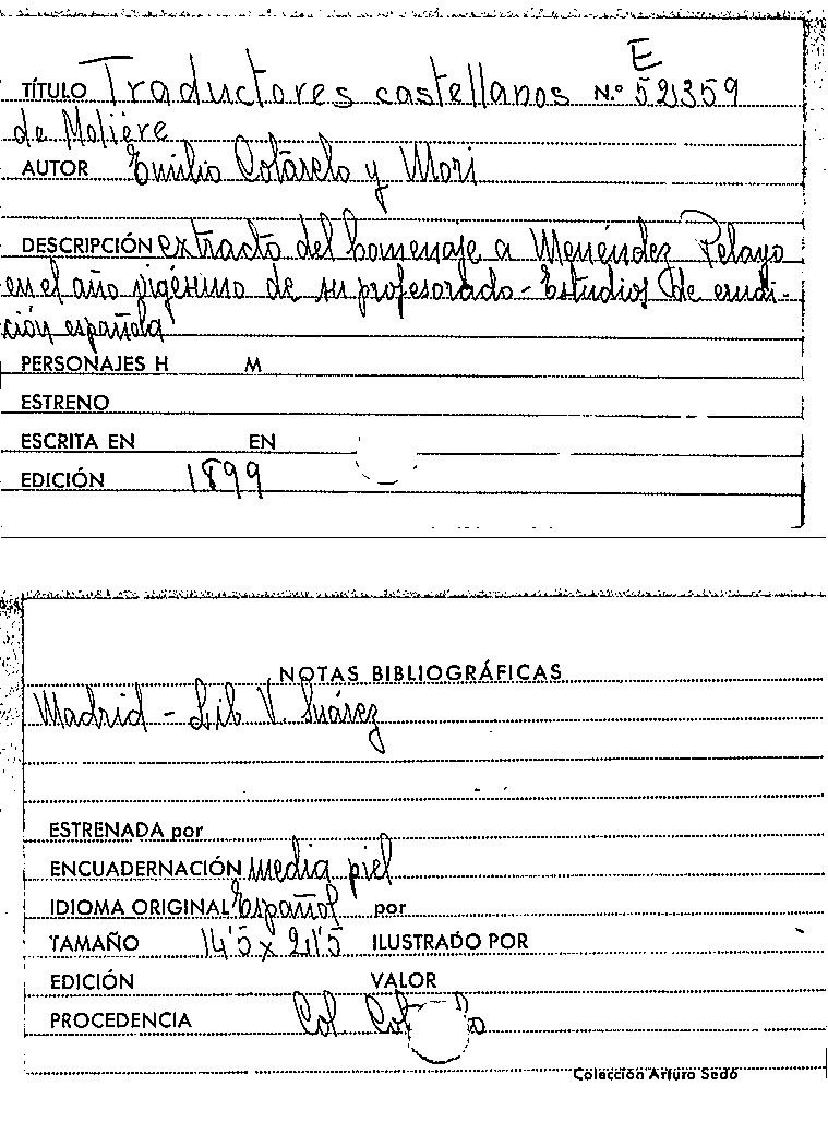 Traductores castellanos de Molière / Emilio Cotarelo y Mori by