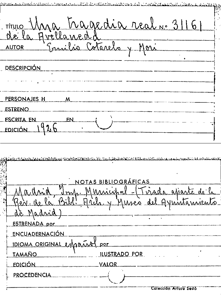 Una Tragedia real de la Avellaneda / Emilio Cotarelo y Mori by